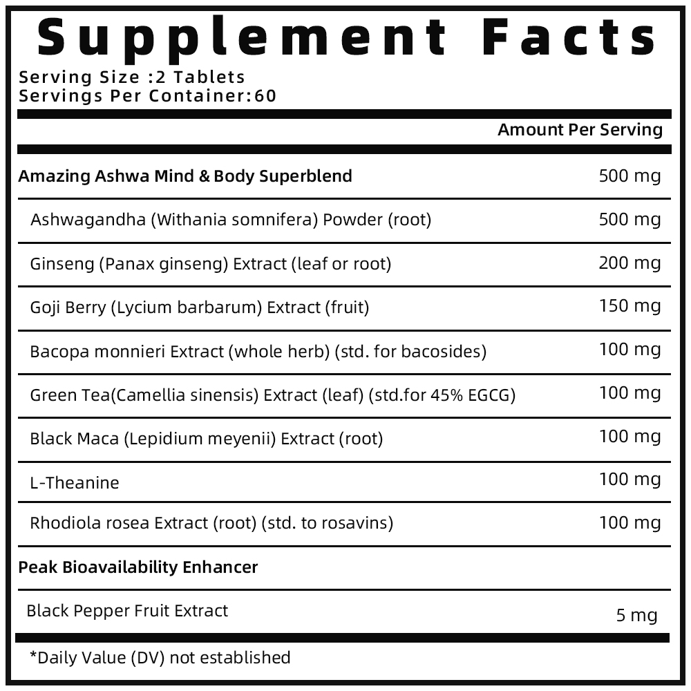 Product Details Product Name Ashwagandha Supplement Service OEM/ODM Label/Logo/Formula/Packaging as your requirement Warranty 2 Years Certificate FDA Samples Accepted Main Market USA.Canada, Europe, Australia, Asia Shipment Usually Within 7 work days for sample, 30-45 days for bulk goods About this item 1.Stress Support Formula: Ashwagandha Extra Strength helps to support a healthy stress response, mood and brain health.2.Superior Quality: Laboratory tested GMO-Free, Gluten-Free and Soy-Free. 3.Premium Standards: Every product manufactured is put through a rigorous process to ensure purity, potency and integrity. we promise to deliver top-quality supplements that are consistently verified for quality and safety. 4.Incredibie Ingredients- We're sorry to say it, but if you’re looking for cheap, you’re in the wrong place. We search far and wide, domestic and international, to provide high-quality ingredients for which your body will thank you. If quality, s…