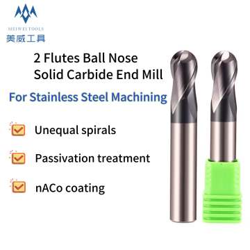 Product Description Product Name: Ball Nose Solid End Mill For Dynamic Milling Brand: Meiwei Tools Number Of Flutes: 2 Corner Style: Ball nose Helix Angle: 35° Coating: TiSiN-based nano composite coating Overall Length: 50mm, 60mm, 75mm, and 100mm Cutting Diameter: 1-16 mm Applicable Materials: Steel (carbon steels, alloy steels & tool steels), stainless steel, titanium alloy, etc. Scope Of Application: Dynamic milling, Profile milling, and finish milling, etc. Specification List D1 (Cutting Diameter) Ap1 max (1st Maximum Cutting Depth) D (Shank Diameter) L (Overall Length) 1.00 2.00 4.00 50.00 1.50 3.00 4.00 50.00 2.00 4.…