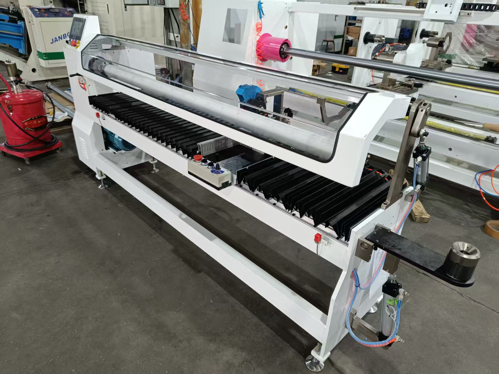 High-Precision Paper Tube Cutter JC-P for Industrial Core Processing The JC-P paper tube cutter is a precision-engineered industrial solution designed for accurate internal volume measurement and efficient cutting of paper cores used in packaging, printing, and manufacturing sectors. With its robust build and advanced automation, this machine ensures consistent performance across high-volume production lines while maintaining tight tolerances—ideal for businesses seeking reliable and scalable core processing equipment. Key Features: Accurate inner diameter measurement capability for paper tubes up to 5mm thickness Adjustable cutting width from 10mm to 550mm for versatile material handling Automatic pneumatic discharge system for seamless operation and reduced downtime Integrated electronic control panel for intuitive setup and monitoring Spindle center at 77mm with PE tube sleeve (included as spare part) for durability 3-phase AC motor (2HP Dongwon brand) ensures stable power delivery…