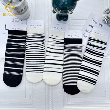 Korean black and white striped mid tube socks pile socks