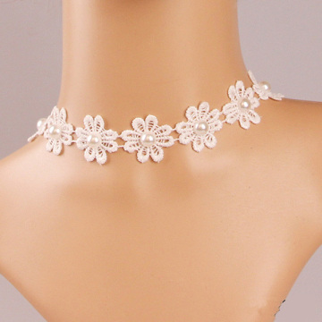 Contracted Lace Flower Modelling Pearl Necklace