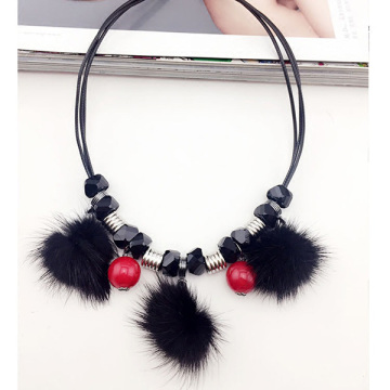 Crystal Bead Fur Balls 90s Neck Choker Everyday Necklace