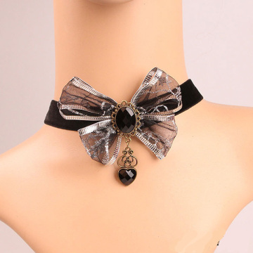 Bowknot Silver Lace Necklace With Heart Charm Velvet Choker