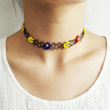 Fashion Beaded Flower Shape Vintage Stretch Tattoo Necklace