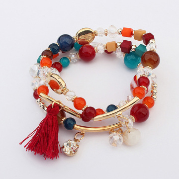 Crystal Beaded Bracelet Rhinestone Pendant Tassel Bracelet