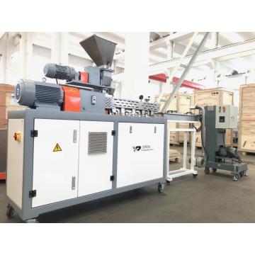 Advantages of the XINDA SKW105 Co-Kneader: · High degree of self-wiping and have no dead spot. · Dispersive mixing without destroying delicate fillers. Working principles: The Co-Kneader, a mild-shear rotating and reciprocating single-screw extruder is designed for shear and temperature sensitive compounds. The flights on the screw are interrupted and interact with three rows of stationary kneading pins located in the barrel wall. The interaction between the moving flights and the stationary pins provide dispersive and distributive mixing simultaneously. Axially opened split barrel guarantees ease of cleaning. Those splined, segmented screw elements and pins can be changed easily according to different processing techniques. In addition, some pins are hollow inside, thermocouples can be inserted to get the accurate temperature of the materials inside the barrels, so as to liquid additives injection. Different from other extruders, the kn…