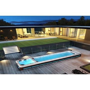 Large Outdoor swimming pool spa This large swim spas with 3 seats for massage,put one on you backyard will be the best decorate.once you have outdoor spa tub,you don't need to go out for swimming.Just stay at home and enjoy swimming and jacuzi. This spa with outdoor pool have enough space for your activities,designed for swimmers. Application: ●Hotel ●Villa ●Outdoor ●Courtyard ●Apartment Specification item value Model number A-3601A Size 5800*2260*1450mm MOQ 1 pc Material Lucite Acrylic Control System USA Balboa…