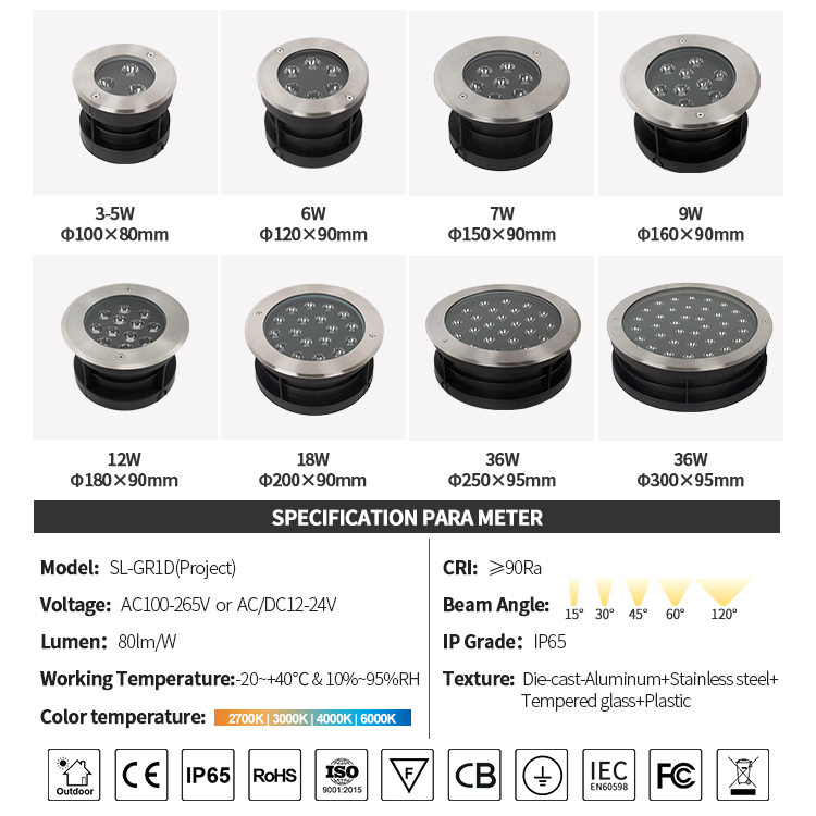 High quality waterproof garden lamp underground ground buried lamp recessed light led underground light Feature: 1.High quality aluminum or stainless steel promise underground lights more durable 2.Outdoor led inground buried light certificate and warranty promise product quality 3.Customized service allows outdoor led underground light to have more colors and sizes 4.Ground recessrd underground uplight working environment -20℃-40℃, suitable for unusual climate FAQ Q: Where is your factory? A: Located in Jiangmen Jianghai district Guangdong Province , one of the biggest light foundation. Q: What kind of certificate you have? A: CE&Rohs , IECEE , SAA ,IP rate approved and so on. Q:How long it will take for sample making? A: 3-5 workings days after payment. Q:What is your lead time for the mass products such as 5000 units per item? A: about 25 days after received payment and sample confirmation if 5000 units or more. Q:What is your payment terms? A: T/T, alibaba trade ass…